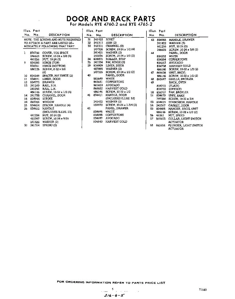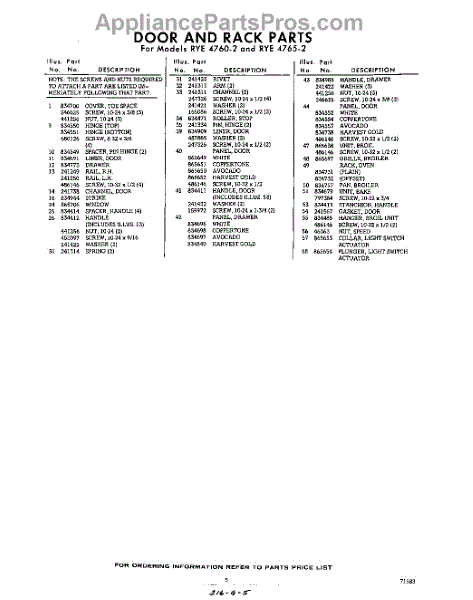 Parts for Whirlpool RYE47652: 05 - Section Parts