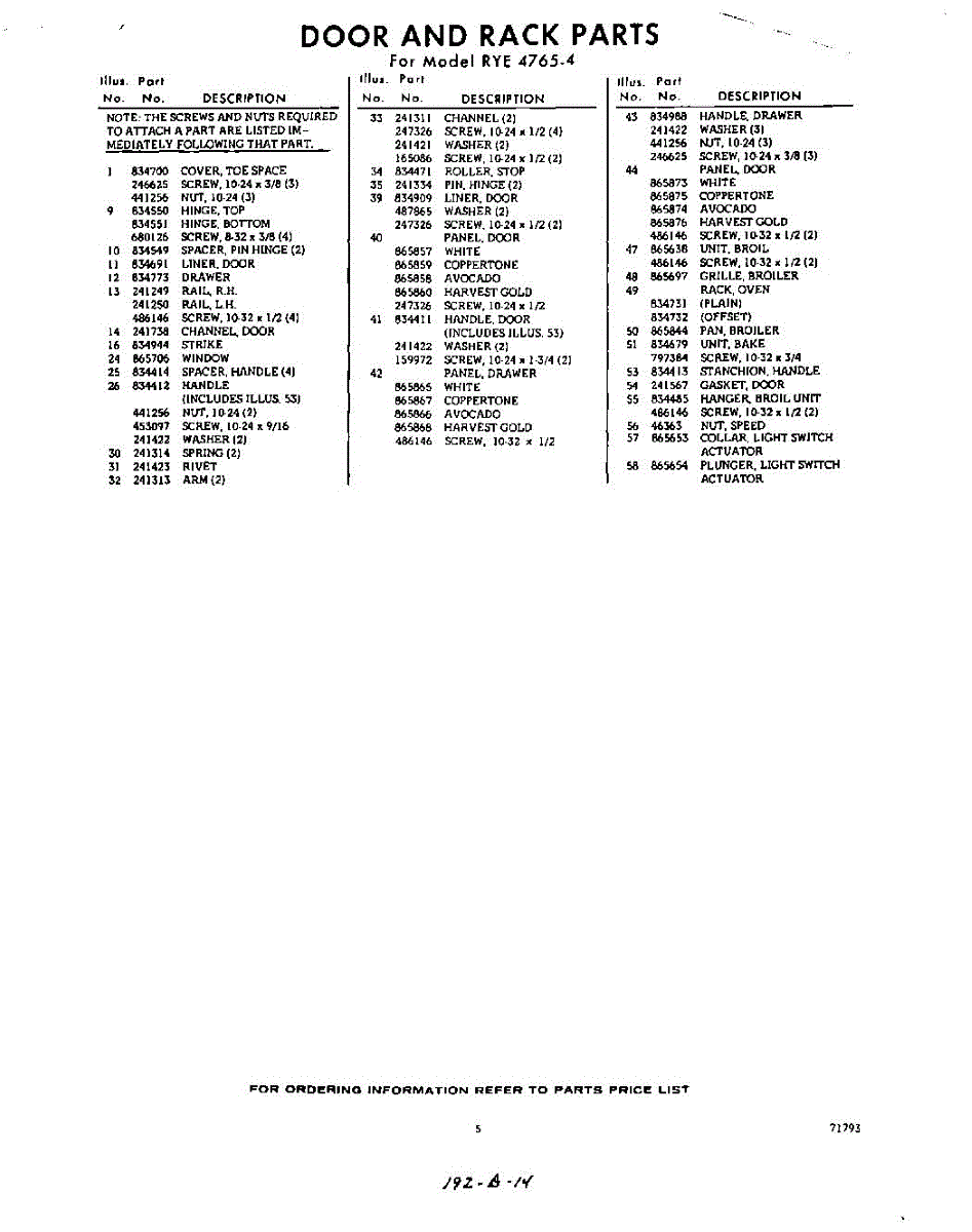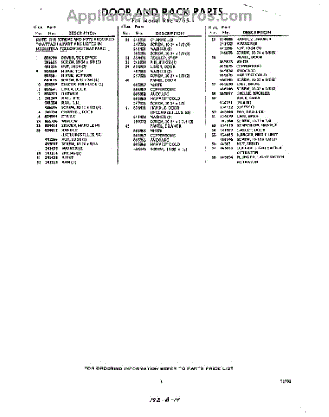 Parts for Whirlpool RYE47654: 05 - Section Parts