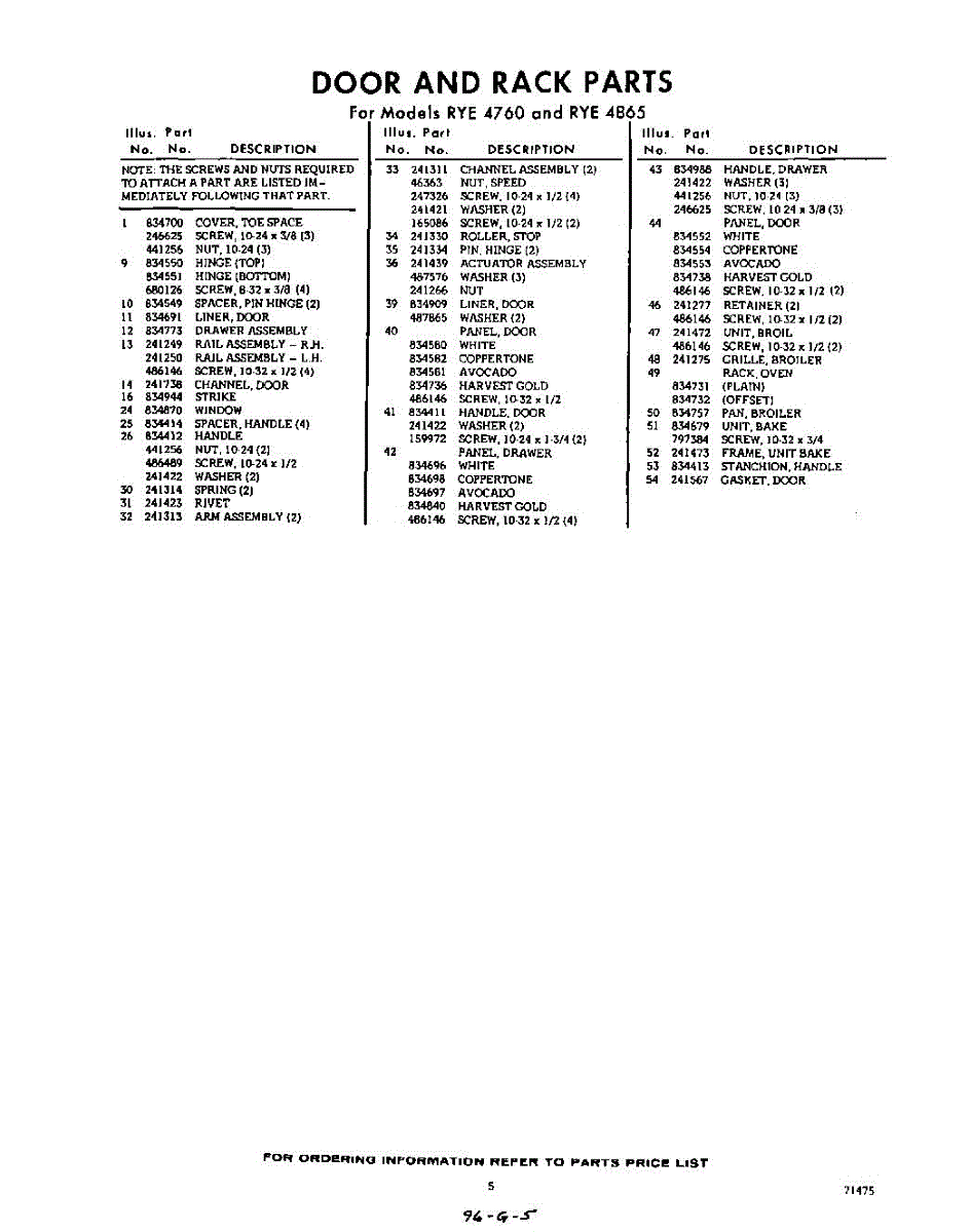 Parts for Whirlpool RYE4865: 05 - Section Parts