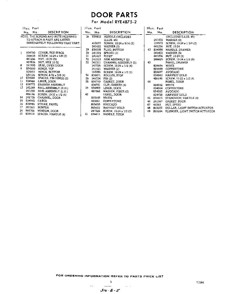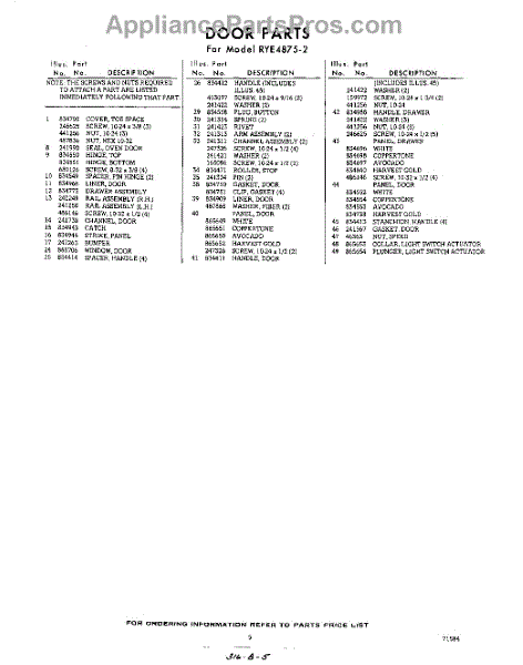 Parts for Whirlpool RYE48752: 05 - Section Parts