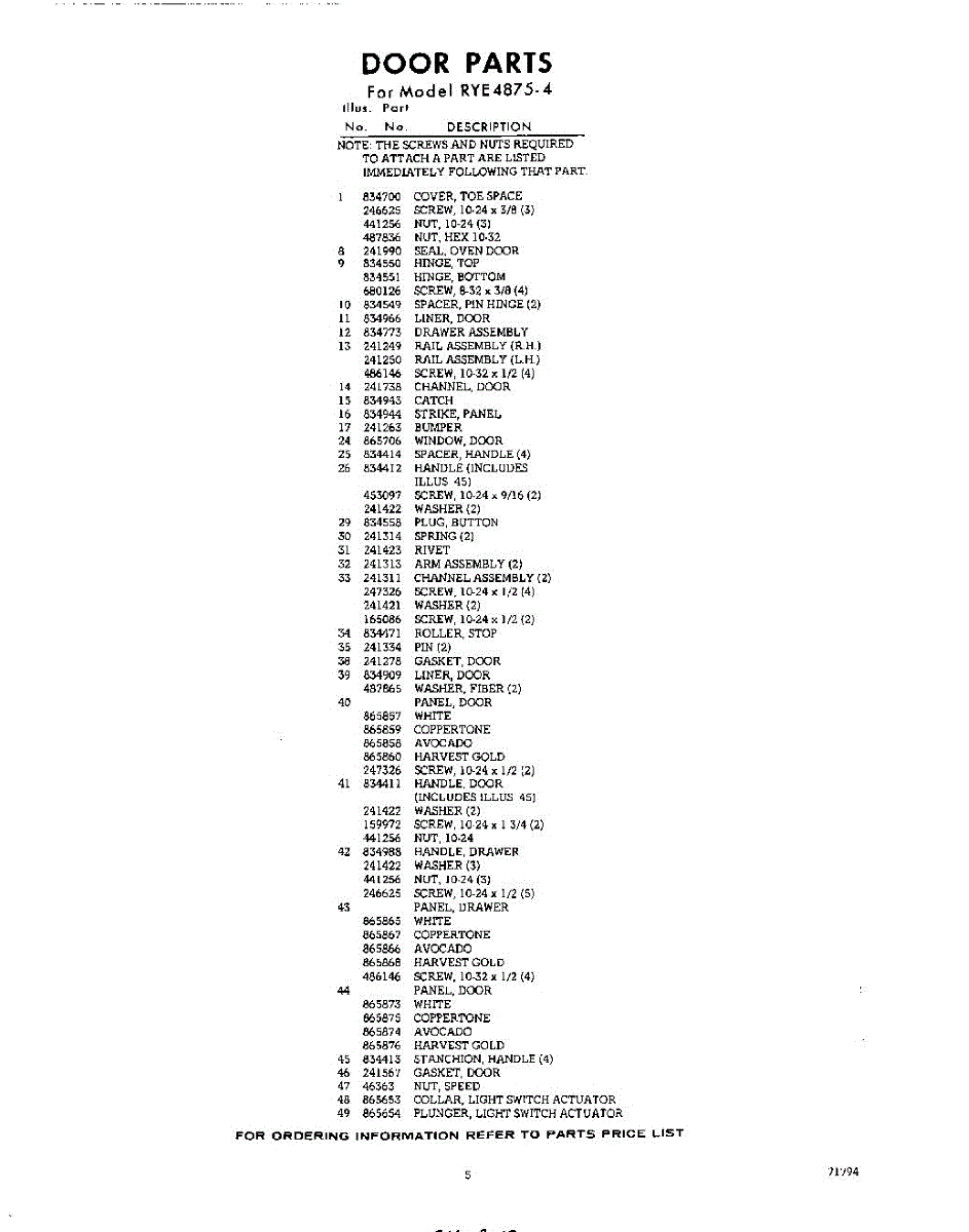 Parts for Whirlpool RYE48754: 05 - Section Parts