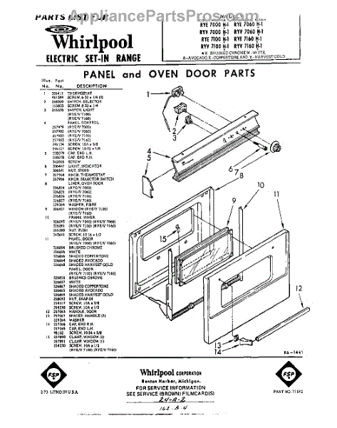 Parts for Whirlpool RYE7060W1: 01 - Section Parts
