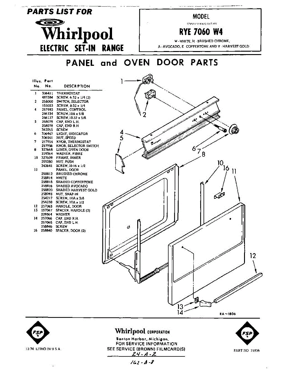 Parts for Whirlpool RYE7060W4: 01 - Section Parts