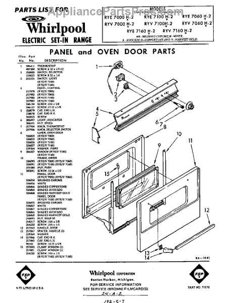 Parts for RYE7100W2
