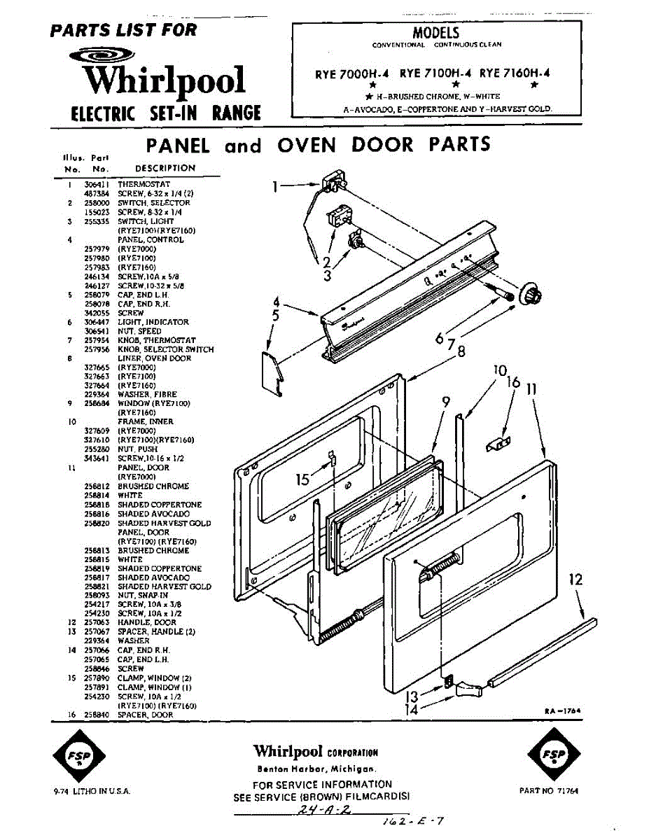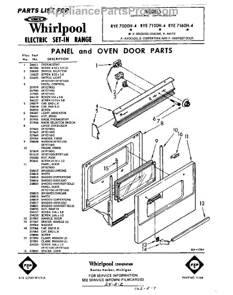 Parts for RYE7160W4