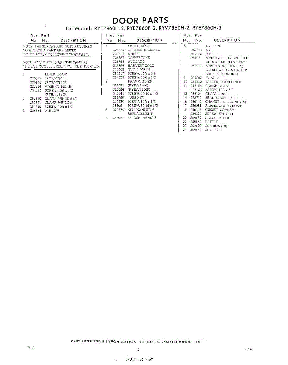 Parts for Whirlpool RYE7860P2: 05 - Section Parts
