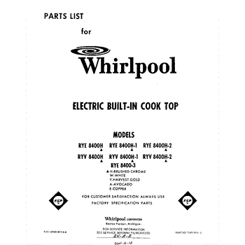 Parts for Whirlpool RYE8400W2: 01 - Section Parts