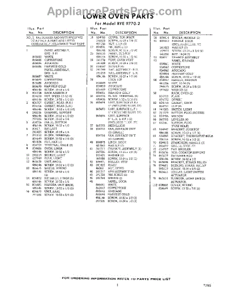 Parts for Whirlpool RYE97702: 05 - Section Parts