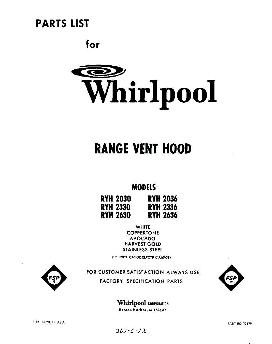 Parts for Whirlpool RYH2636: 01 - Section Parts