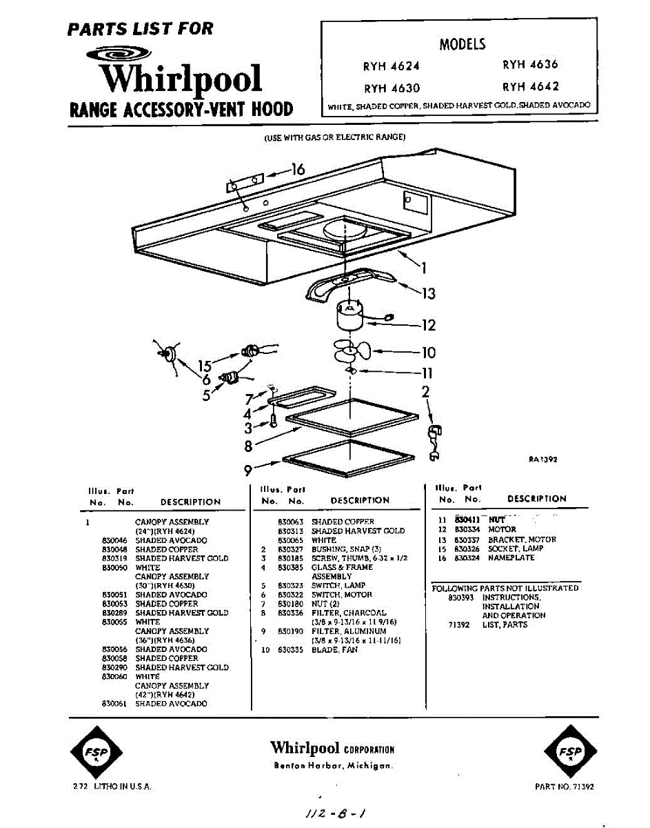 Parts for Whirlpool RYH4642: 01 - Section Parts