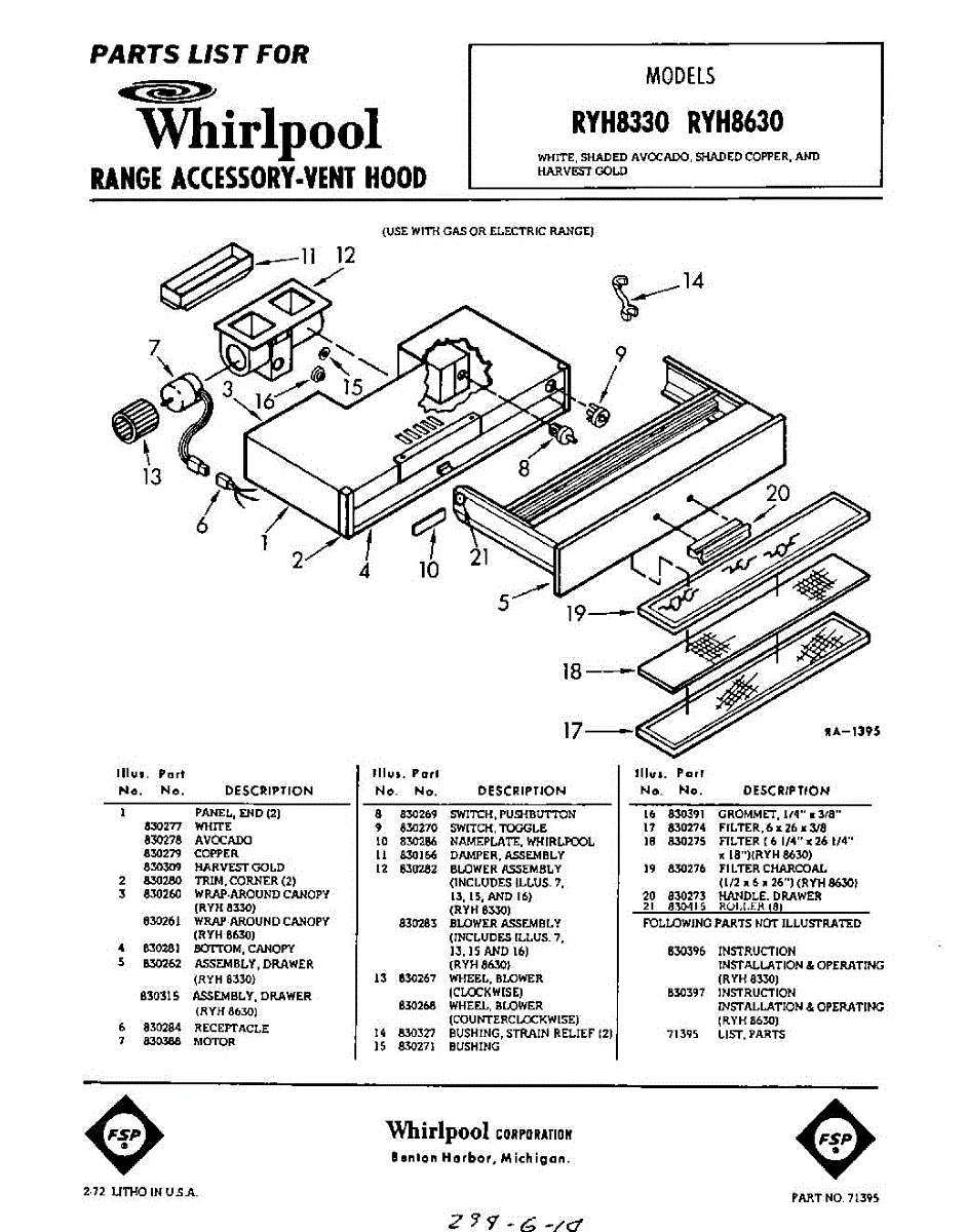 Parts for Whirlpool RYH8330: 01 - Section Parts