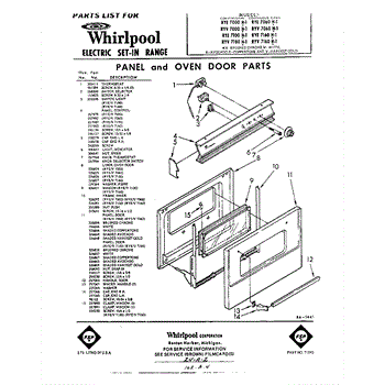 Parts for Whirlpool RYV7100H1: 01 - Section Parts