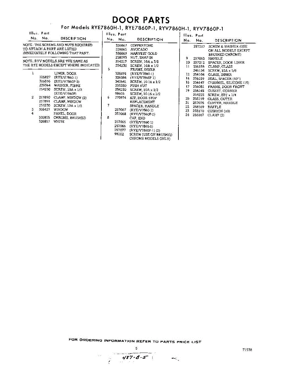 Parts for RYV7860P1