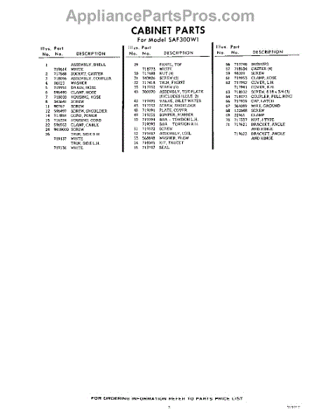 Parts for Whirlpool SAF300W1: 03 - Section Parts