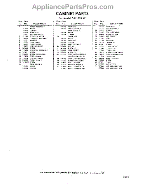 Parts for Whirlpool SAF325W1: 03 - Section Parts