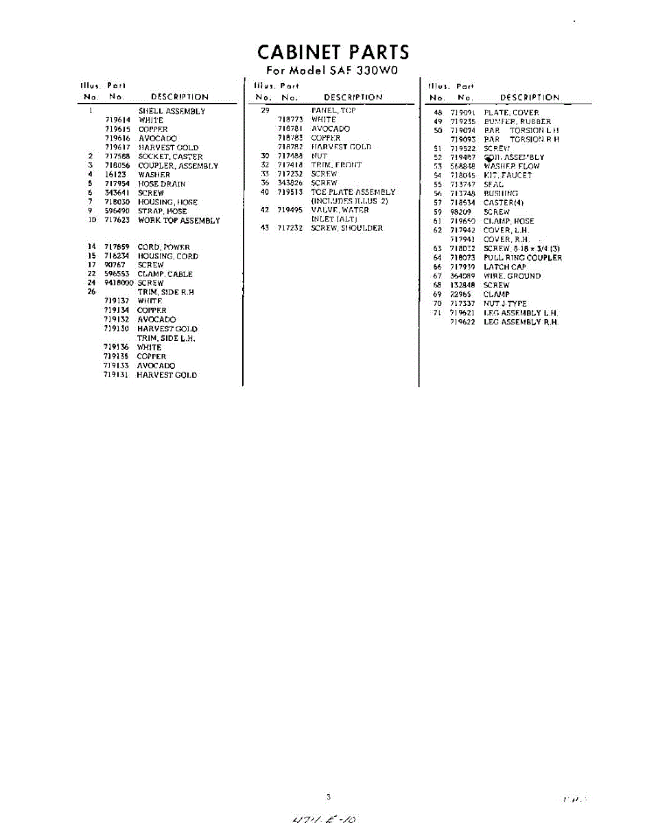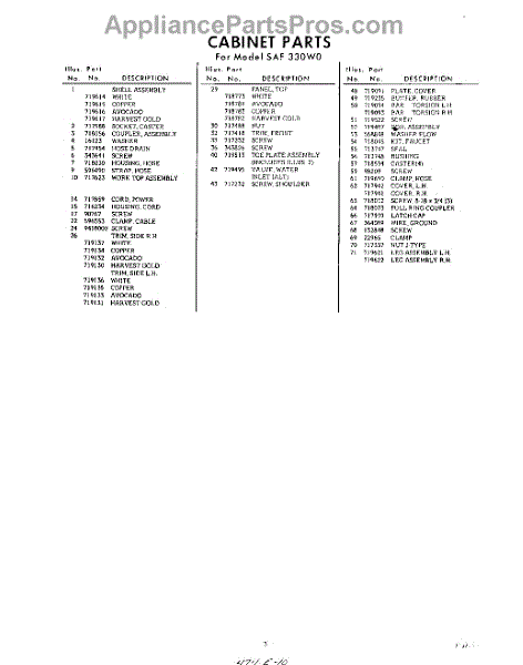 Parts for Whirlpool SAF330W0: 03 - Section Parts
