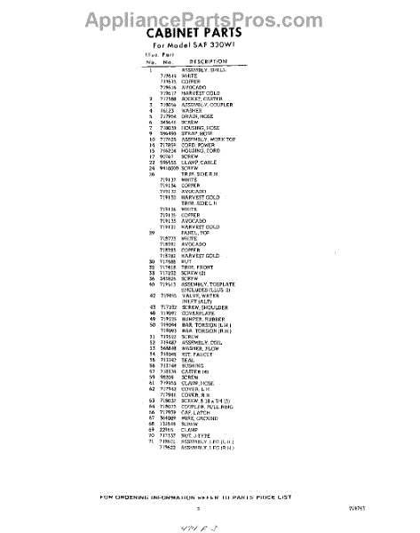 Parts for Whirlpool SAF330W1: 03 - Section Parts