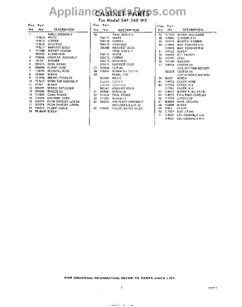Parts for Whirlpool SAF340W0: 03 - Section Parts