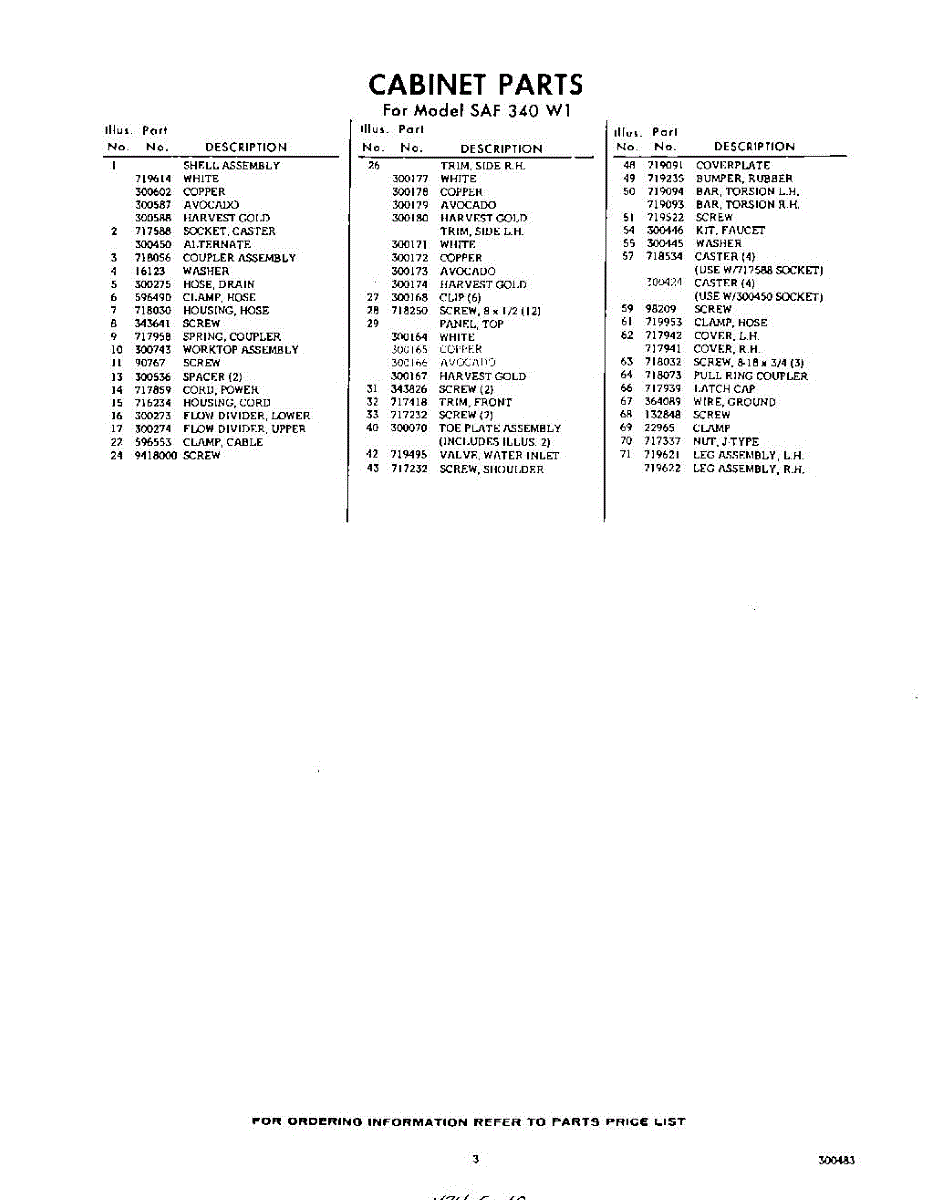 Parts for Whirlpool SAF340W1: 03 - Section Parts