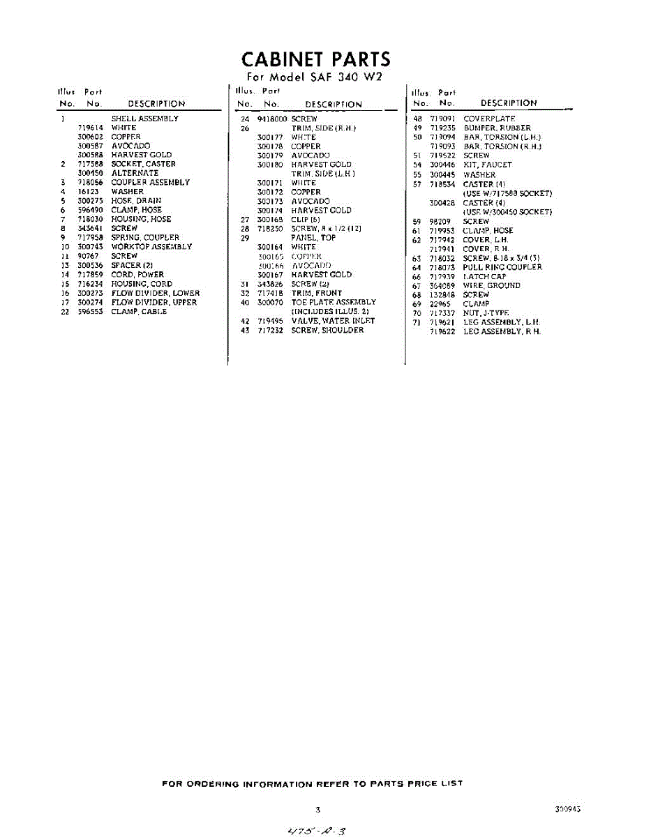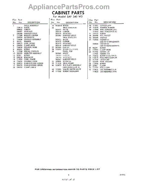 Parts for Whirlpool SAF340W2: 03 - Section Parts