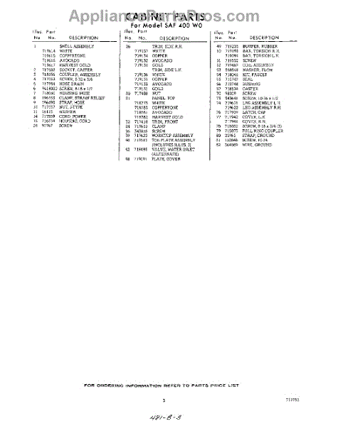 Parts for Whirlpool SAF400W0: 03 - Section Parts