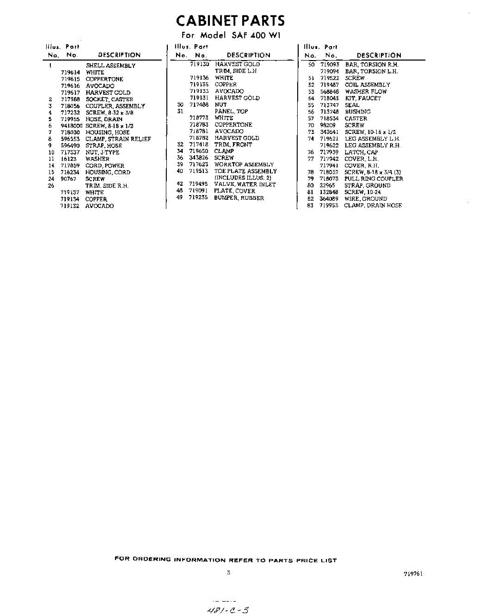 Parts for Whirlpool SAF400W1: 03 - Section Parts