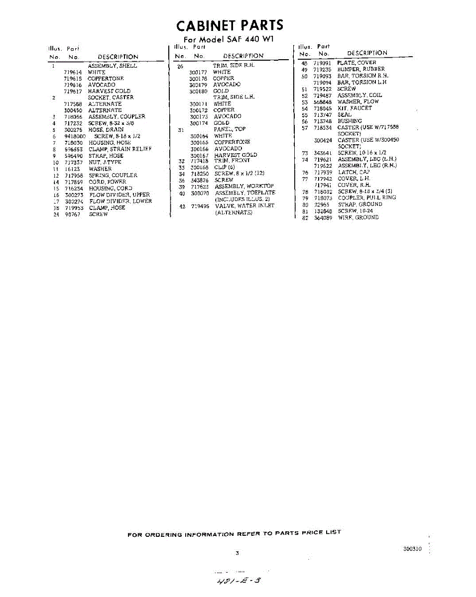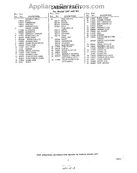 Parts for Whirlpool SAF440W1: 03 - Section Parts