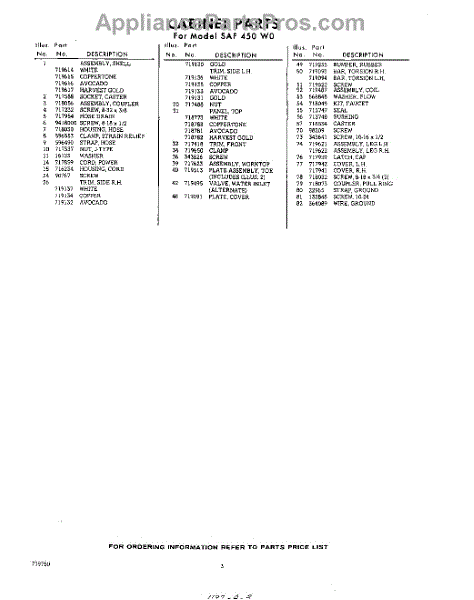 Parts for Whirlpool SAF450W0: 03 - Section Parts