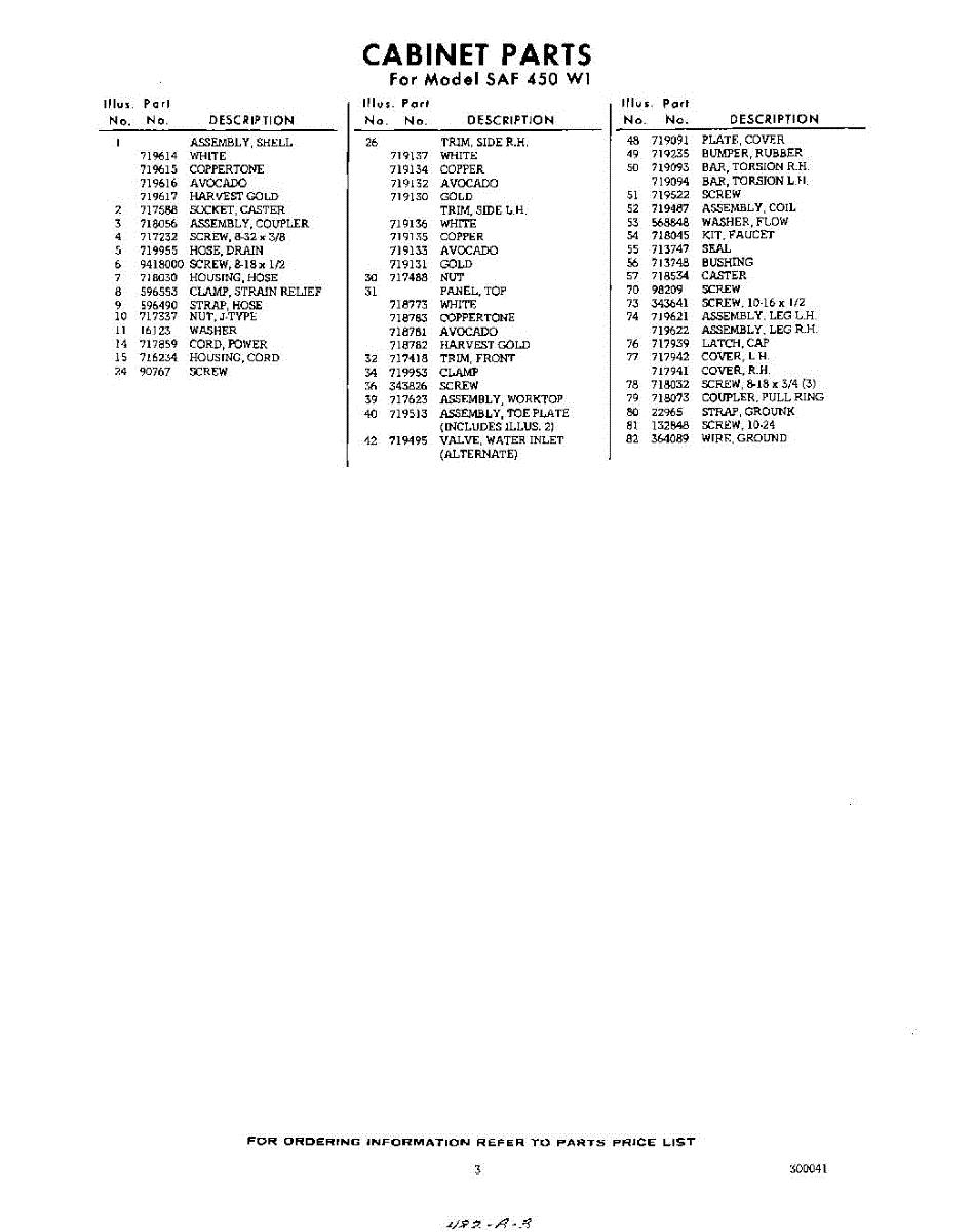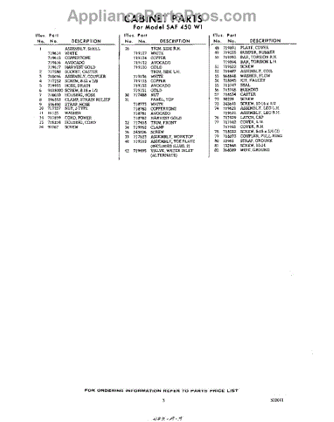 Parts for Whirlpool SAF450W1: 03 - Section Parts