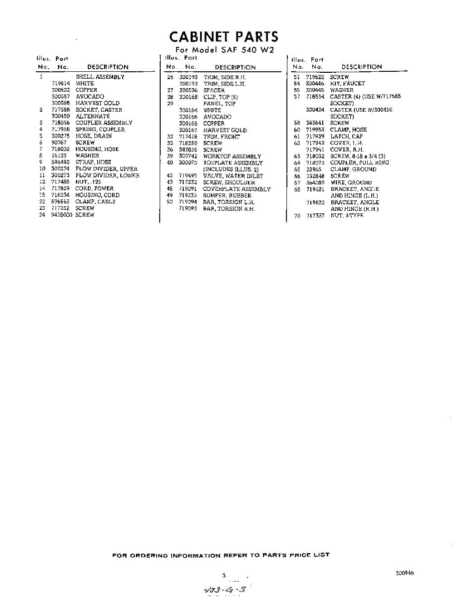 Parts for Whirlpool SAF540W2: 03 - Section Parts