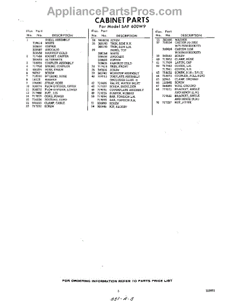 Parts for Whirlpool SAF600W9: 03 - Section Parts