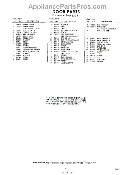 Parts for Whirlpool SAU320P1: 03 - Section Parts
