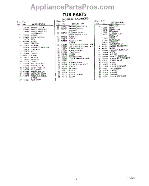 Parts for Whirlpool SAU400P0: 05 - Section Parts