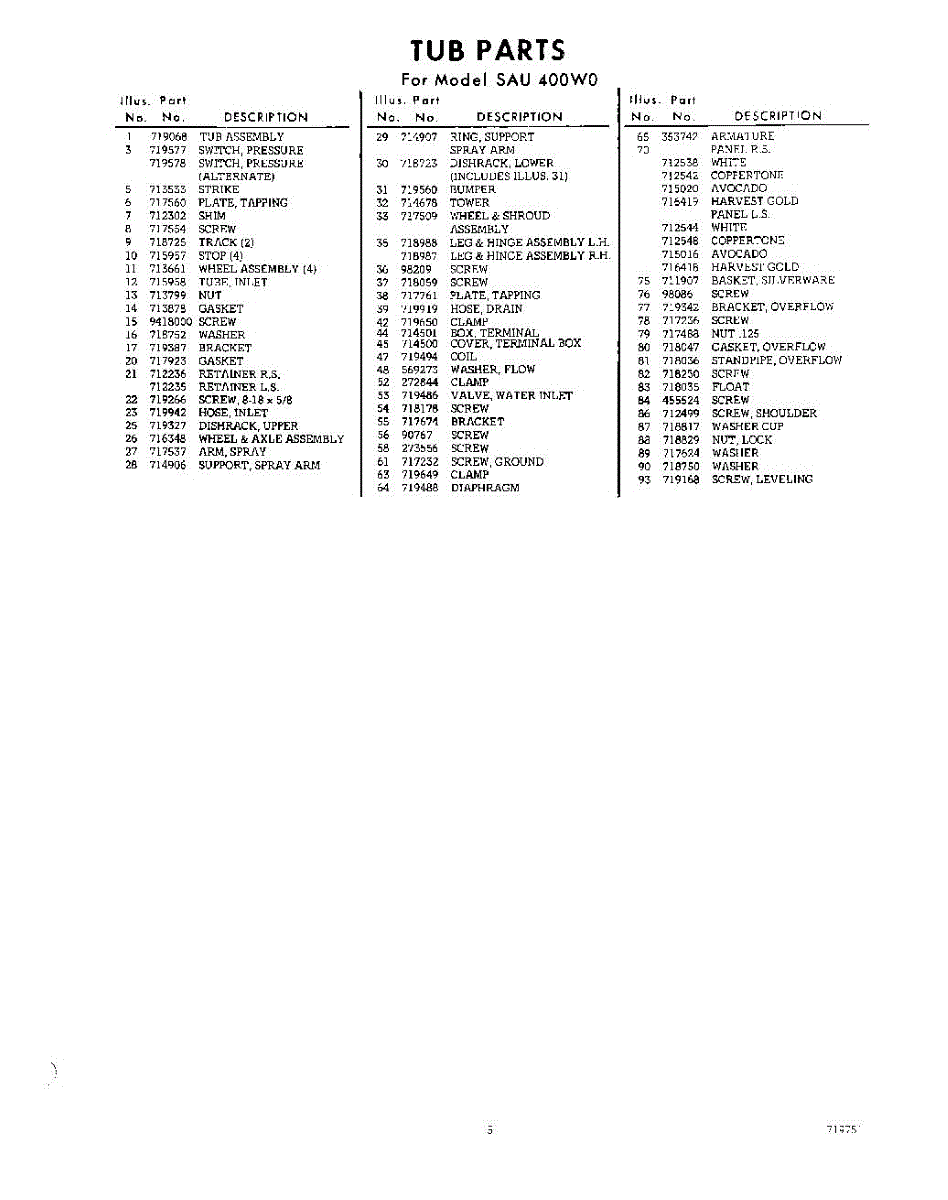 Parts for Whirlpool SAU400W0: 05 - Section Parts