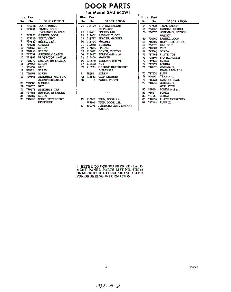 Parts for Whirlpool SAU600W1: 03 - Section Parts
