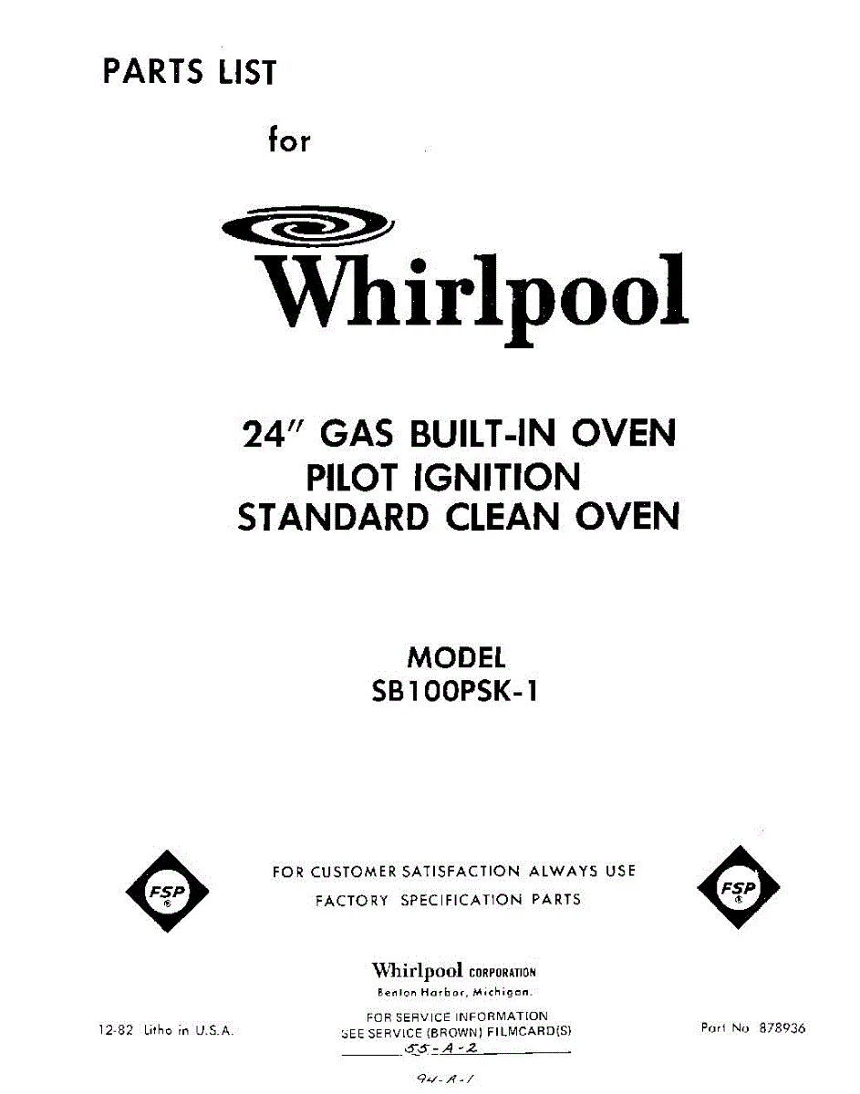 Parts for Whirlpool SB100PSK1: 01 - Section Parts