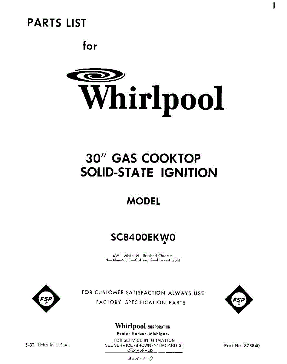 Whirlpool Cooktop Parts