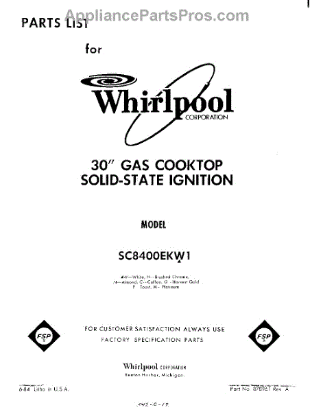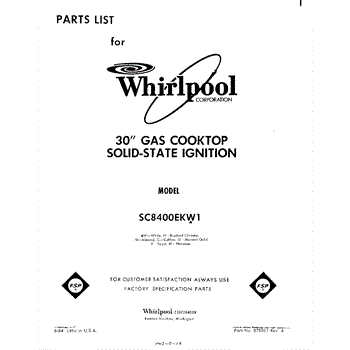 Whirlpool Cooktop Parts