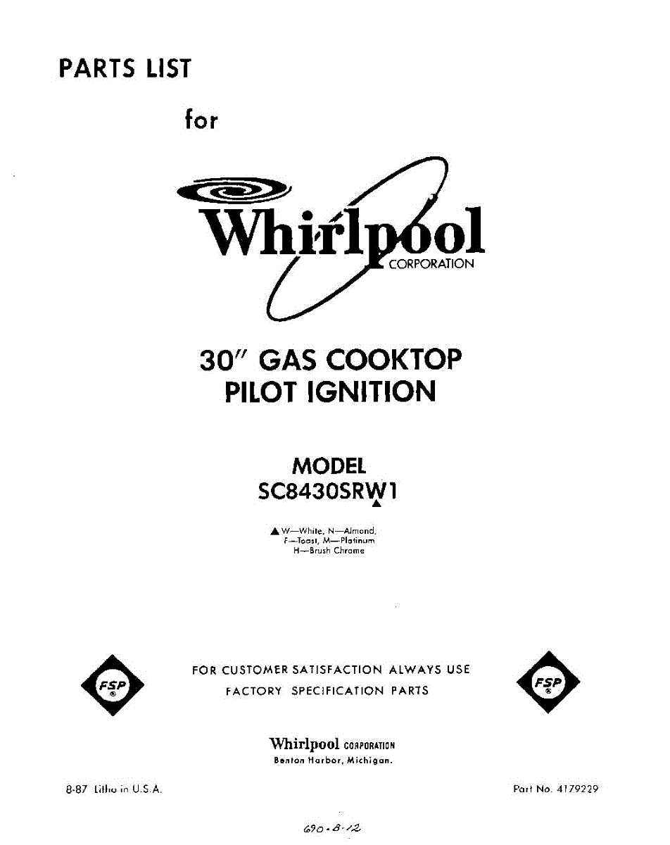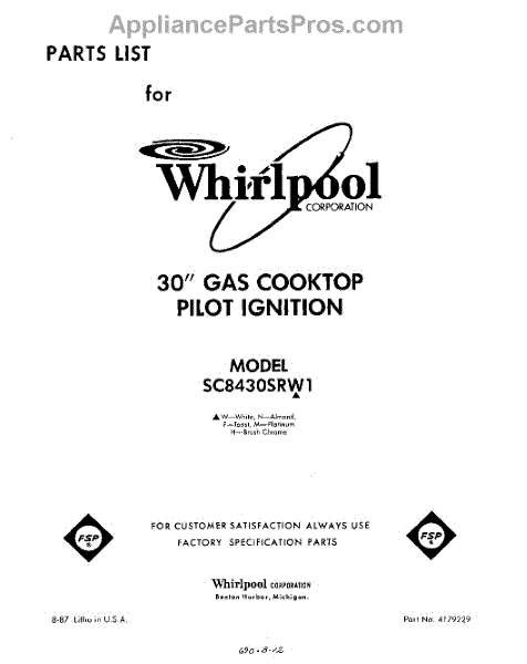 Parts for SC8430SRW1
