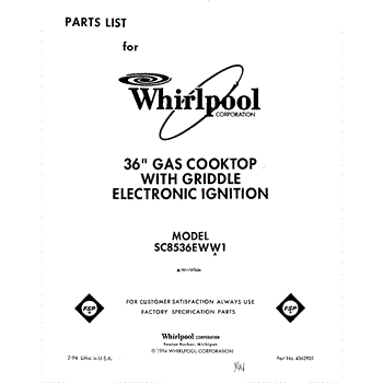 Whirlpool Cooktop Parts