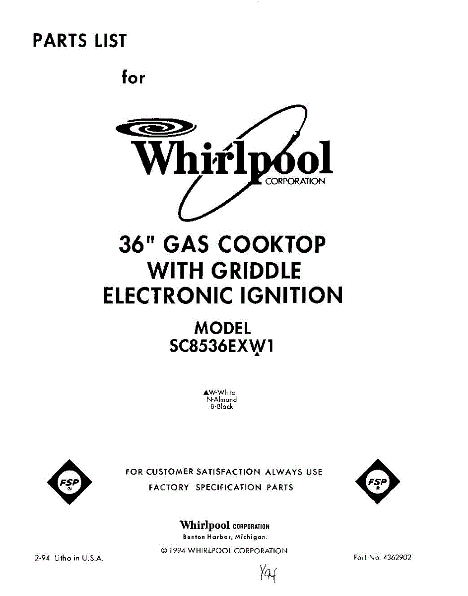 Parts for SC8536EXW1