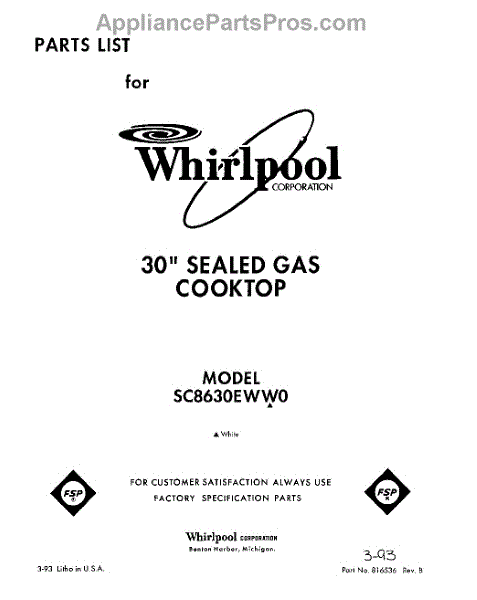 Whirlpool Cooktop Parts