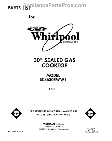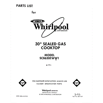 Parts for Whirlpool SC8630EWW1: 01 - Section Parts