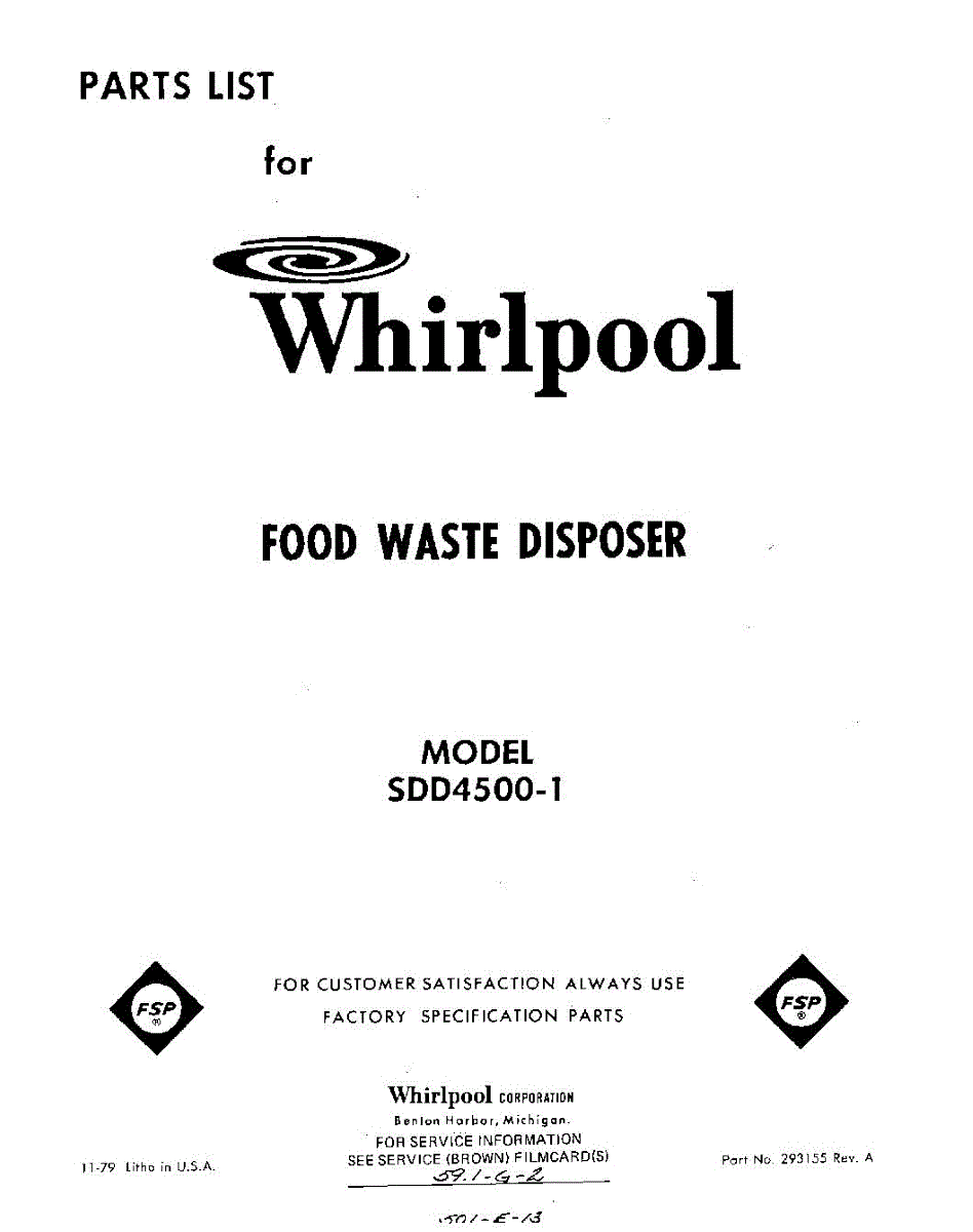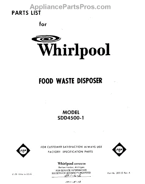 Parts for Whirlpool SDD45001: 01 - Section Parts