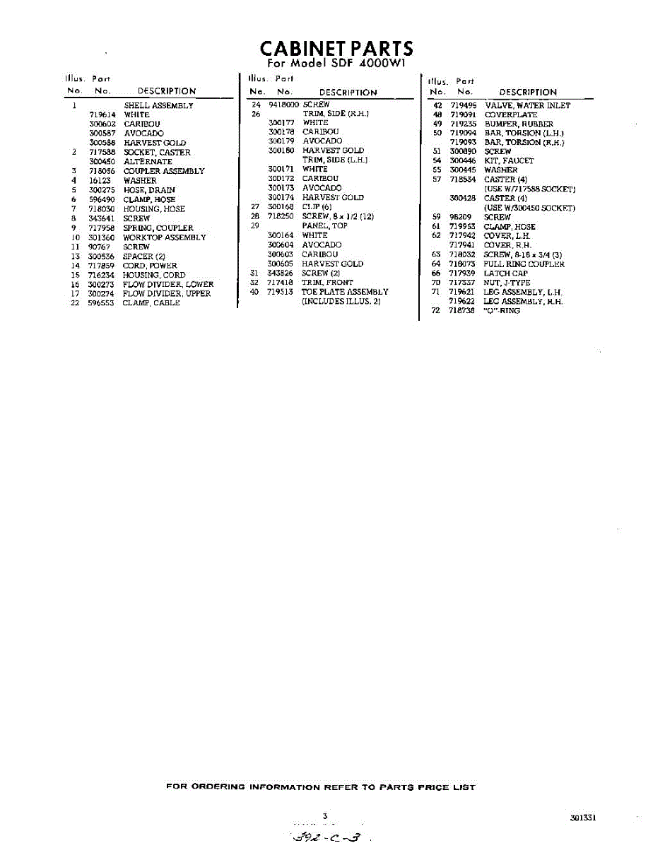Parts for Whirlpool SDF4000W1: 03 - Section Parts