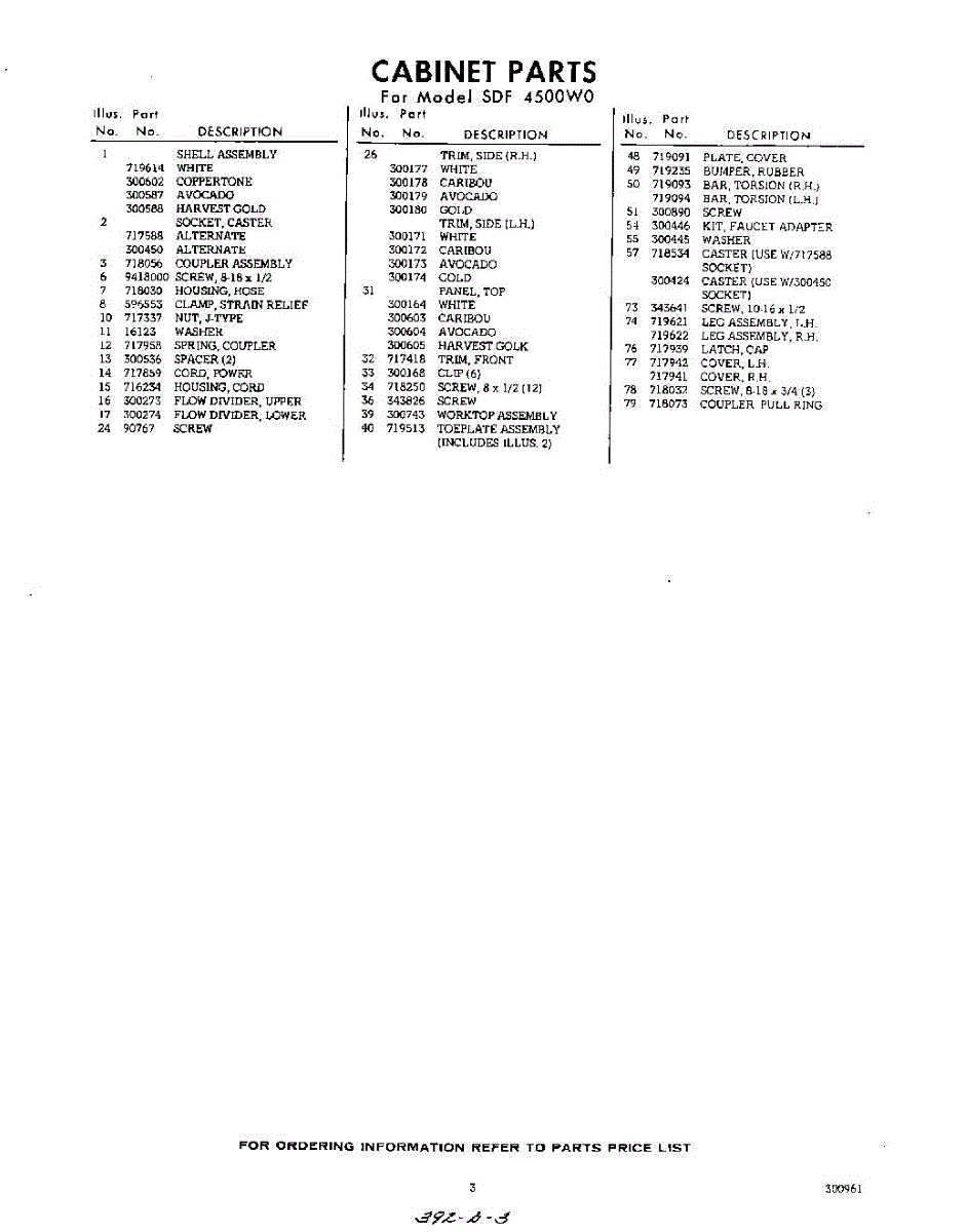 Parts for Whirlpool SDF4500W0: 03 - Section Parts