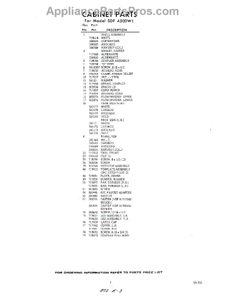 Parts for Whirlpool SDF4500W1: 03 - Section Parts