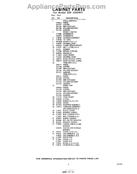 Parts for Whirlpool SDF4500W2: 03 - Section Parts