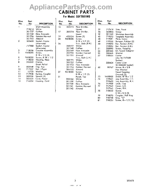 Parts for Whirlpool SDF7801W0: 03 - Section Parts