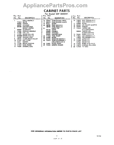 Parts for Whirlpool SDF8000W1: 03 - Section Parts